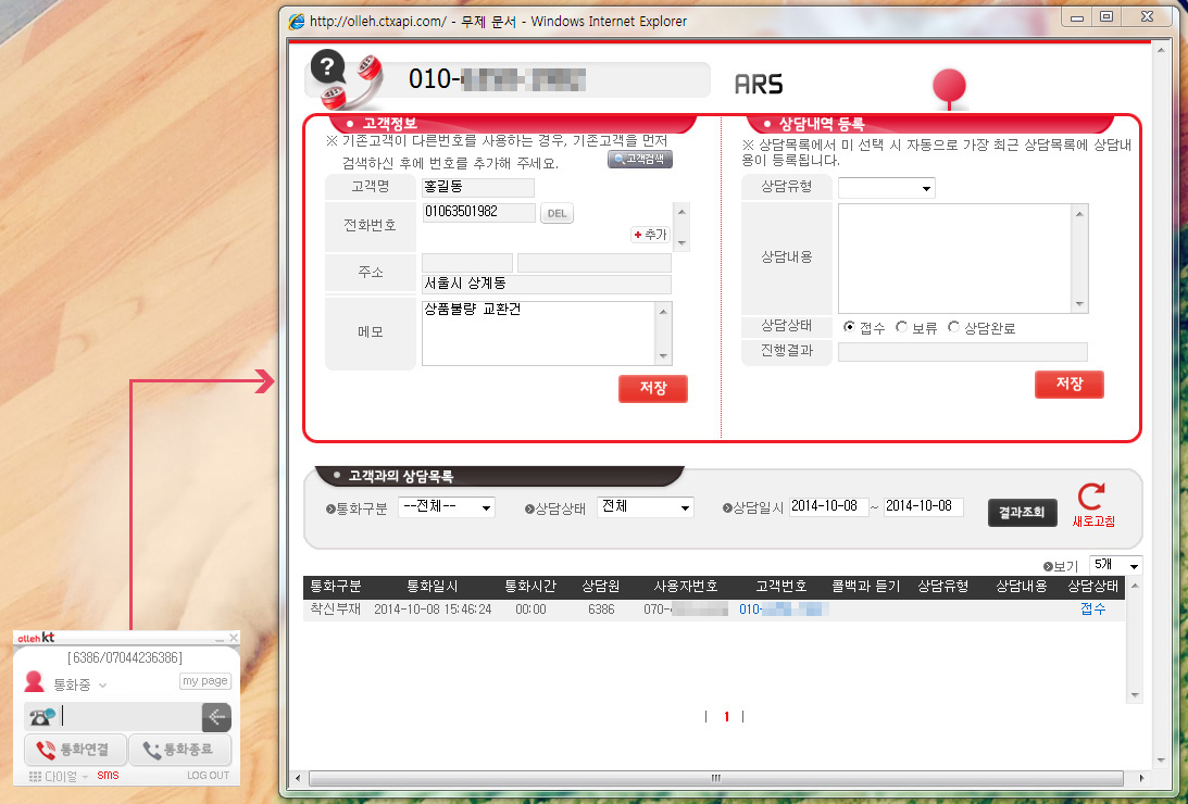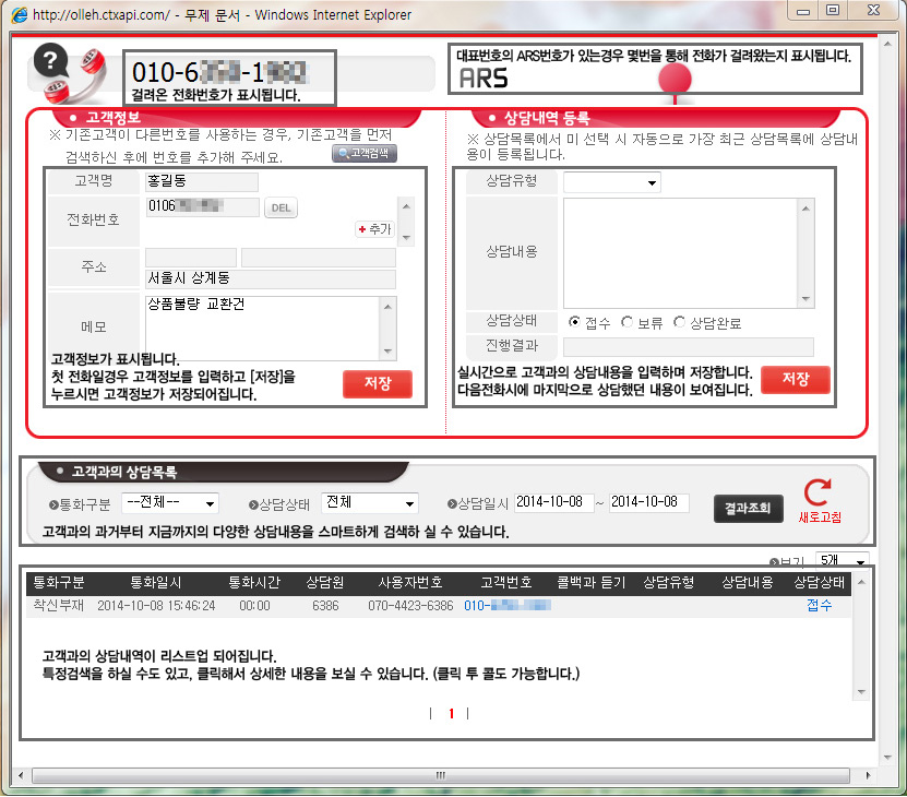 2. °í°´À¸·ÎºÎÅÍ ÀüȰ¡ ¿È°ú µ¿½Ã¿¡ °í°´Á¤º¸°¡ ÀúÀåµÈ popupâÀÌ ³ªÅ¸³³´Ï´Ù.