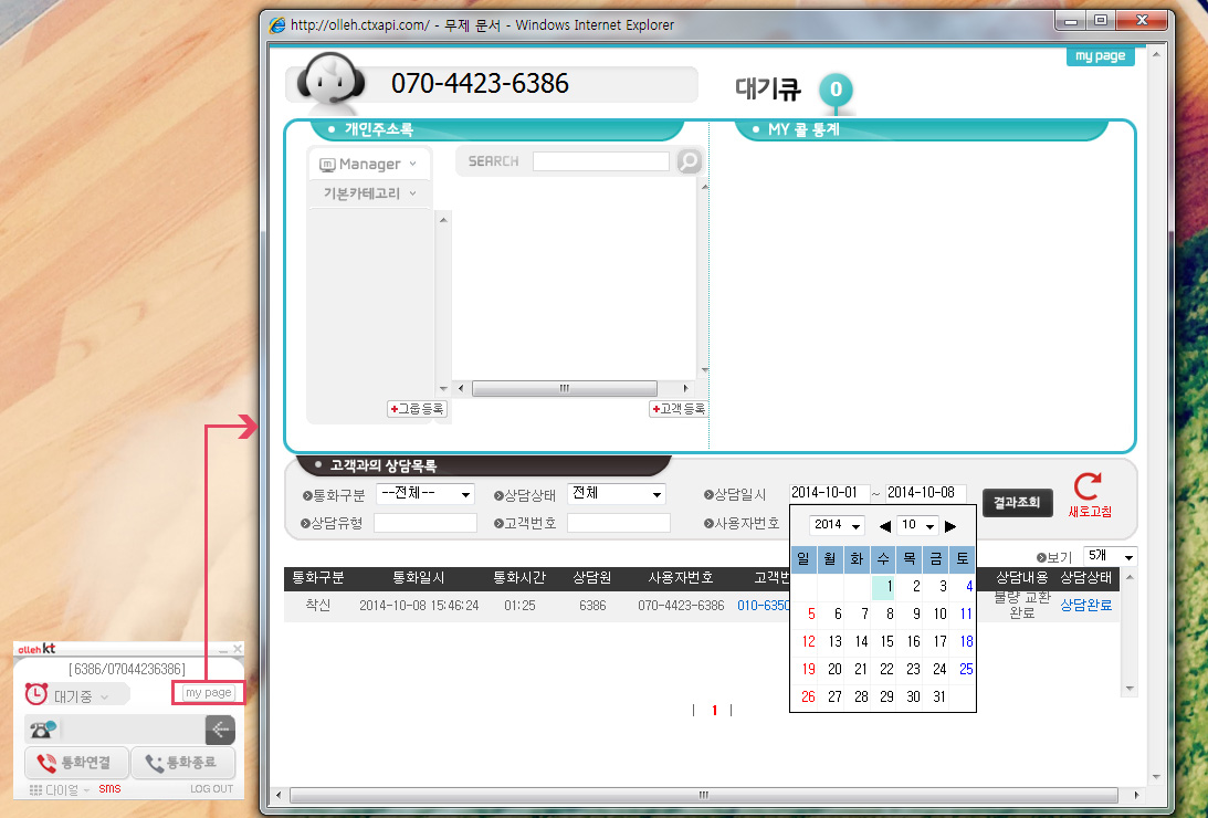 4. ¾îÇø®ÄÉÀ̼ÇÀÇ [my page]¸¦ Ŭ¸¯ÇÏ½Ã¸é ³»¹øÈ£(070¹øÈ£)ÀÇ ÅëÈÅë°è °Ë»ö, ÁÖ¼Ò·Ï µîÀ» ÀúÀåÇϰí È®ÀÎÇÒ ¼ö ÀÖ½À´Ï´Ù.